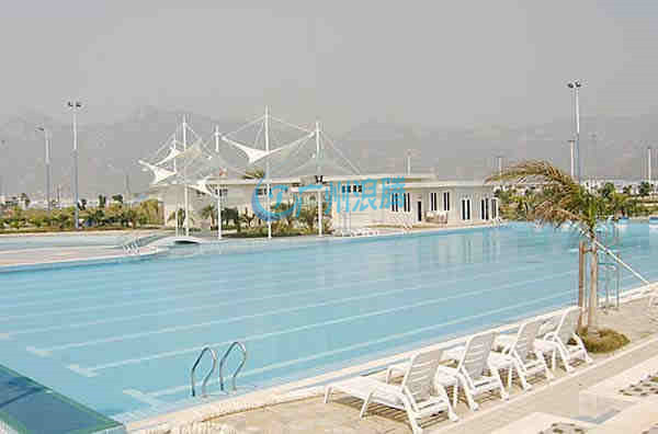 標準游泳池長50米,寬21米,奧運會世界錦標賽要求寬25米,另外還有長度只有一半即25米的游泳池稱為短池。水深大于1.8米。有8個泳道,每道寬2.5米,邊道另加0.5米。出發臺應居中設在每泳道中心線上,臺面50厘米×50厘米。臺面臨水面前緣應高出水面50至70厘米,臺面傾向水面不應超過10度。游泳池的池岸寬一般出發臺端不小于5米,其余池岸不小于3米。正式比賽池,出發臺池岸寬不小于10米,其他岸寬不小于5米。國際也有25米游泳池的比賽。