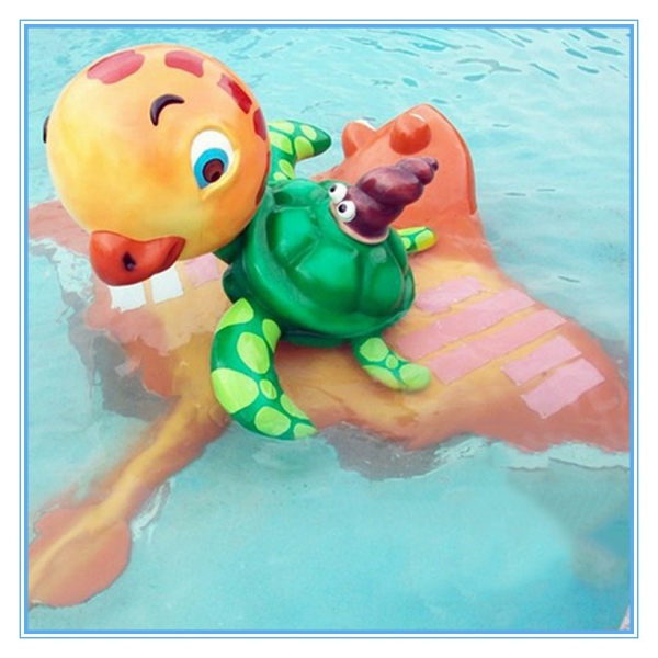 綠龜田螺LT-GL17155是廣州浪騰水上樂園設備有限公司專門為水上游樂場所研發設計生產的一款親子戲水樂園設備。此款兒童戲水小品設計為一個卡通造型的烏龜背著一個形象的田螺一起溫馨渡河,就像一個媽媽背著自己的小孩。這樣的兒童水上樂園設備給親子教育提供一個非常好的契機!作為國內杰出的水上樂園設施廠家——廣州浪騰不僅僅提供水上樂園設備,也為客戶著想,同時也為游客著想。不但能生產質量過硬的水上樂園設施也關注社會,注重親子教育,著眼未來!