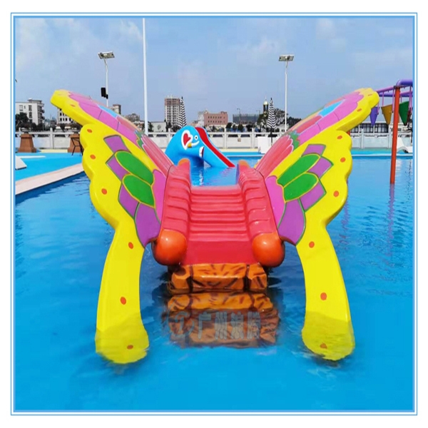 水上樂園設備彩蝶滑梯LT-XP108是由廣州浪騰水上樂園設備廠家設計的一款兒童滑梯。設計師根據飛舞的美麗蝴蝶造型設計而成。毛毛蟲在經過痛苦的掙扎和不懈的努力后,終于破繭成蝶。這樣一個美麗而又充滿教育意義的故事特別適合親子教育。因此,在越來越注重家庭親情教育的今天,此款設備還能提供一個契機,寓教于樂。在孩童玩耍的同時也可以順便做做家庭教育。所以,這樣的一款設備特別適合放在水上樂園的兒童戲水池。